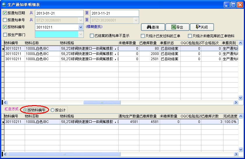 勾選此項(xiàng)后只顯示未結(jié)案的生產(chǎn)通知單