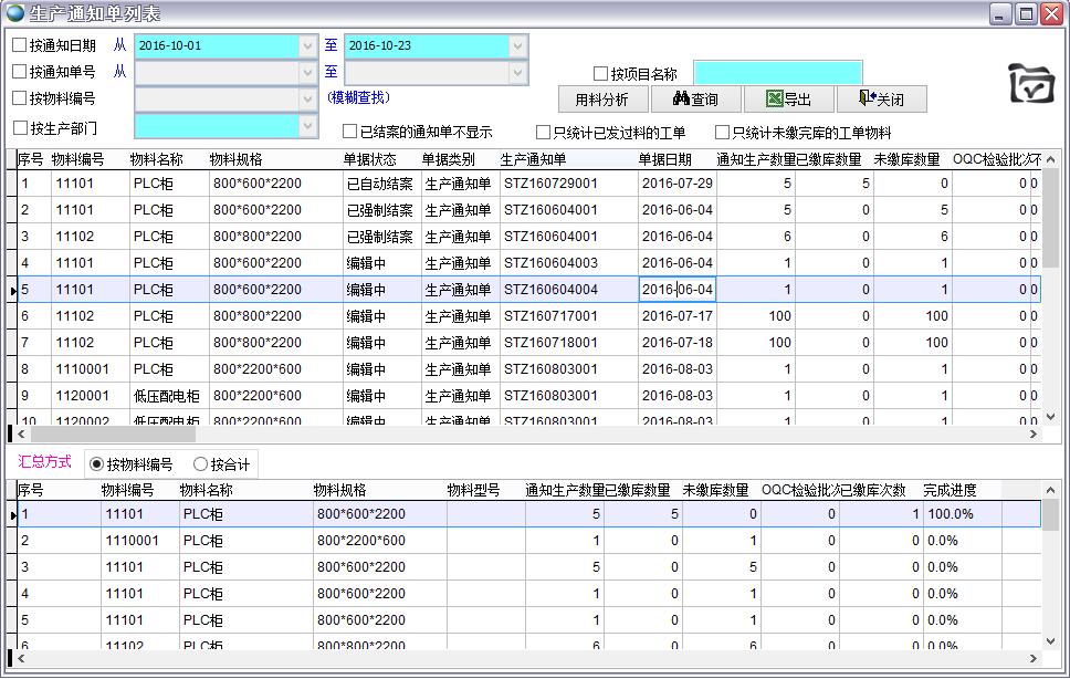 生產(chǎn)通知單列表會(huì)顯示所有符合搜索條件的生產(chǎn)通知單,并按要求進(jìn)行匯總。