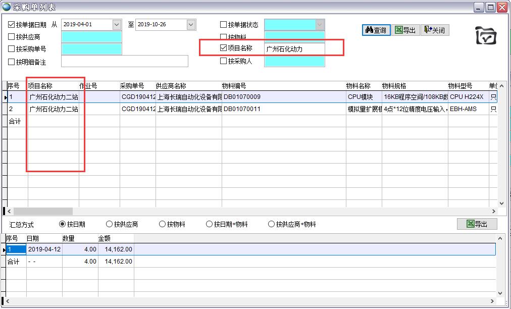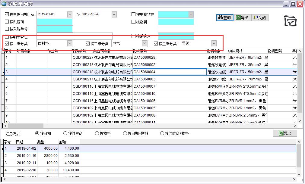 可以按物料編號、物料名稱、物料規(guī)格模糊查詢