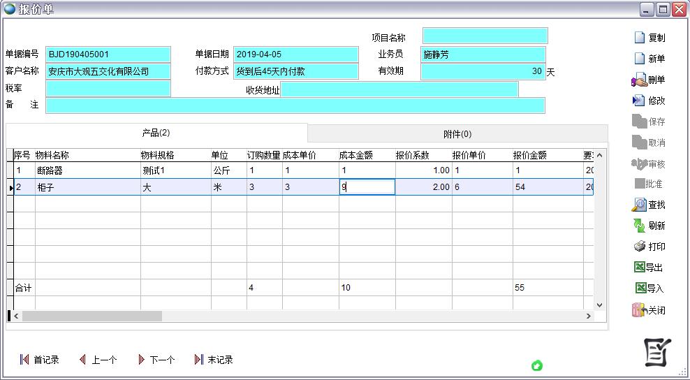 我們希望報(bào)價(jià)單中的單價(jià)是根據(jù)公式自動(dòng)計(jì)算的,公式為:成本單價(jià)*報(bào)價(jià)系數(shù),成本單價(jià)和報(bào)價(jià)系數(shù)都是手工輸入。