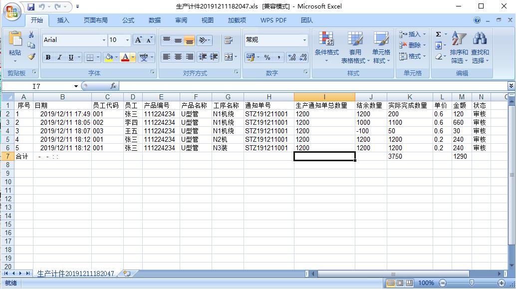 生產(chǎn)計(jì)件記錄生產(chǎn)人員生產(chǎn)每道工序的生產(chǎn)數(shù)量和單價(jià),做為產(chǎn)成品成本核算和人員工資就算的依據(jù)。