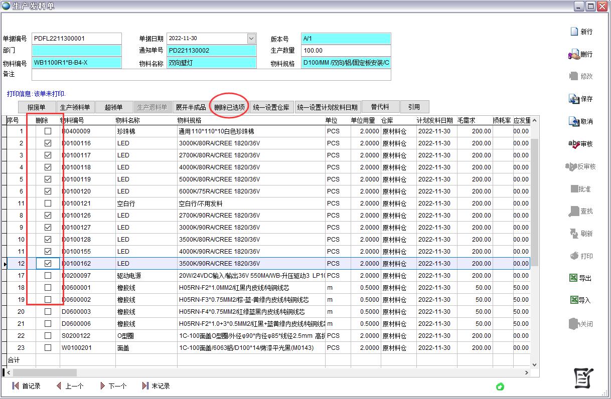 點(diǎn)展開半成品后 如果半成品沒有展開成功,檢查配置文件,去掉這個勾選項(xiàng) 刪除已選項(xiàng) 在表體布局中顯示出刪除列 替代料 參考替代料管理 相關(guān)知識