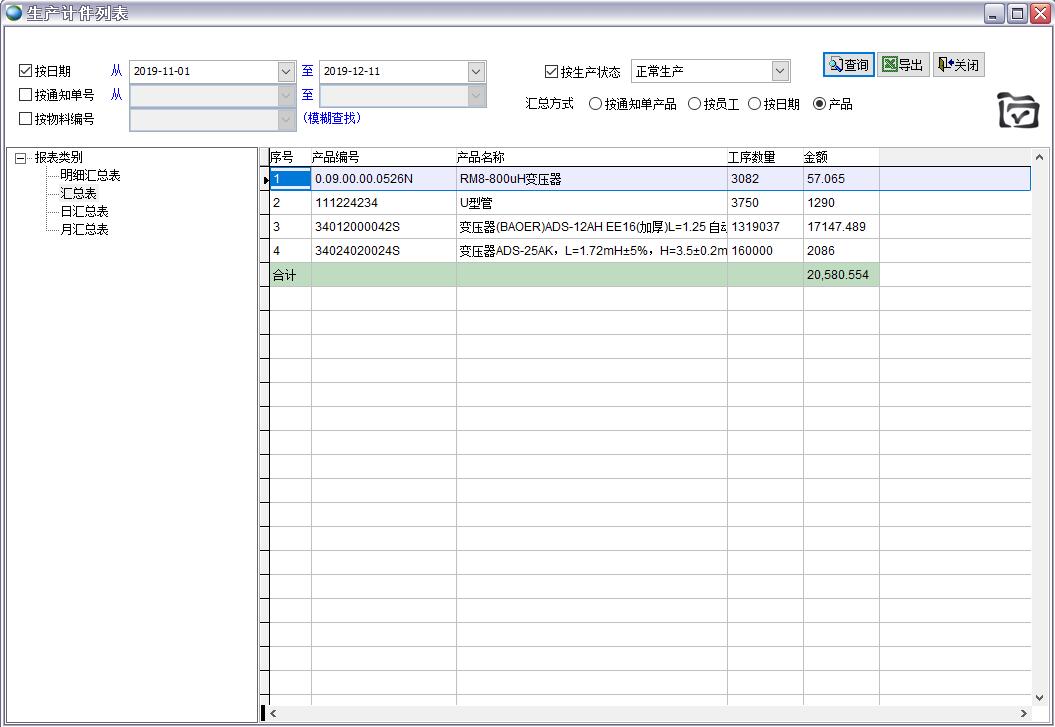 按生產(chǎn)通知單產(chǎn)品匯總