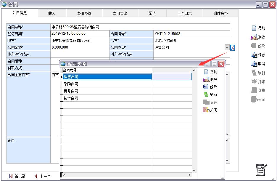 合同類型可以預先添加好
