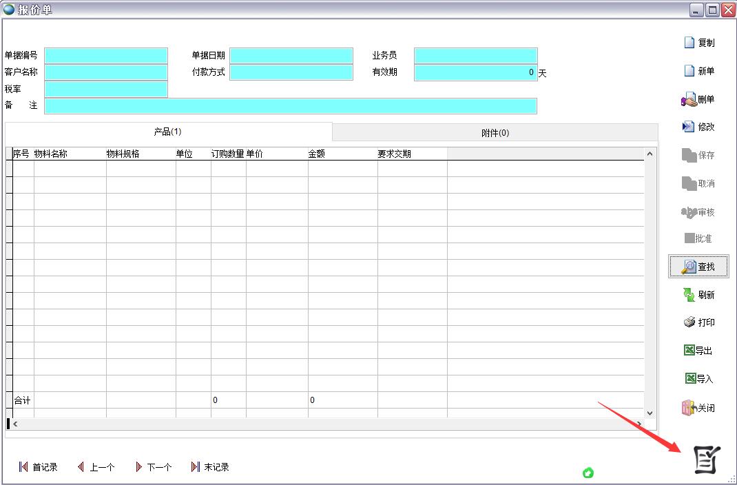 打開路徑:【主菜單】->【銷售】-> 【報價單】->【右下角】