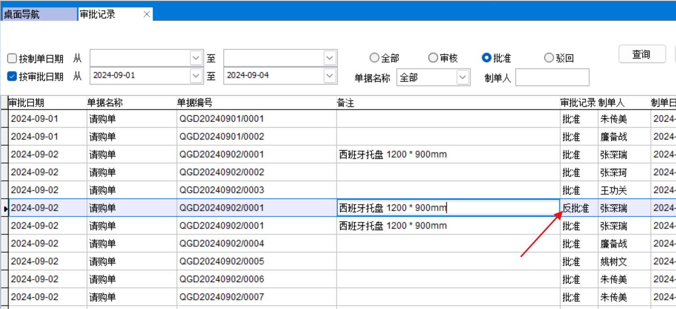 比如下圖這個(gè)反批準(zhǔn)記錄