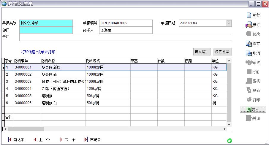 查看庫存 在物料編號中點鼠標右鍵可查看庫存 打印 可通過打印模板修改打印格式 導入 1、點新單 2、點導入 3、格式必須按安裝目錄\數(shù)據(jù)導入模板\其他入庫單.xls格式 4、導入后 入庫單價和金額 如果沒有出現(xiàn)單價和金額,可以在表體布局中設(shè)置 由于沒有引用任何單據(jù),其它入庫單單價需手工填寫 也可以不直接在其它入庫單中填寫單價,比如其它入庫單是由倉庫制單,但倉庫不知道單價多少,倉庫只管數(shù)量 其它入庫單制單后,由財務在入庫單金額維護中補上單價