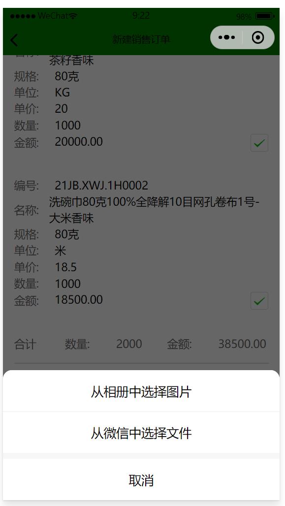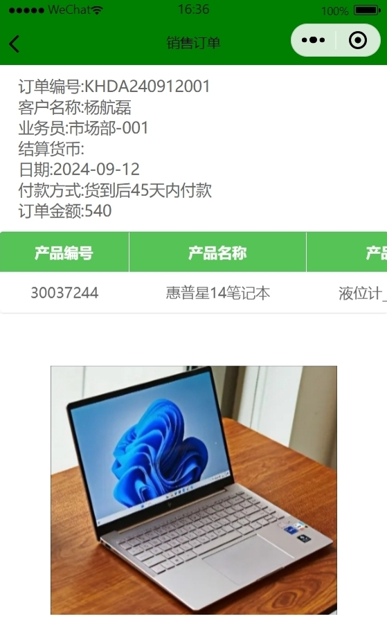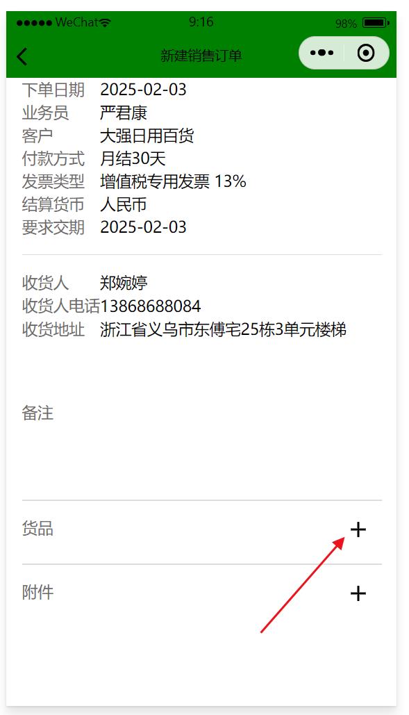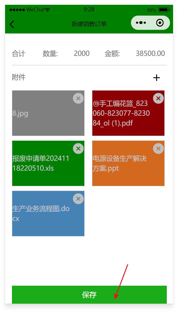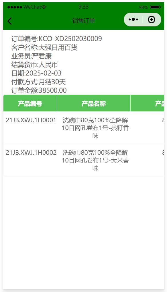 7、點(diǎn)保存就能保存該銷售訂單,數(shù)據(jù)會(huì)自動(dòng)傳遞到ERP系統(tǒng)中,如果在微信小程序中沒有看到剛保存的銷售訂單,可以等30~60秒后再查詢看下