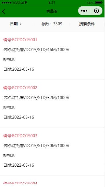 商品表對應ERP中的物料編碼表,只能在ERP中添加和修改,數(shù)據(jù)同步到微信小程序端。