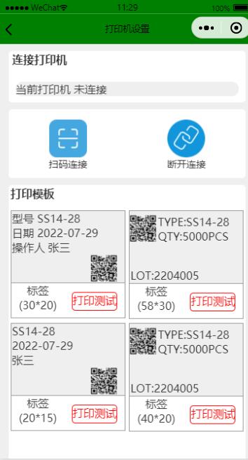 手機(jī)端的打印機(jī)必須是藍(lán)牙打印機(jī),打印機(jī)用于打印產(chǎn)品標(biāo)簽。