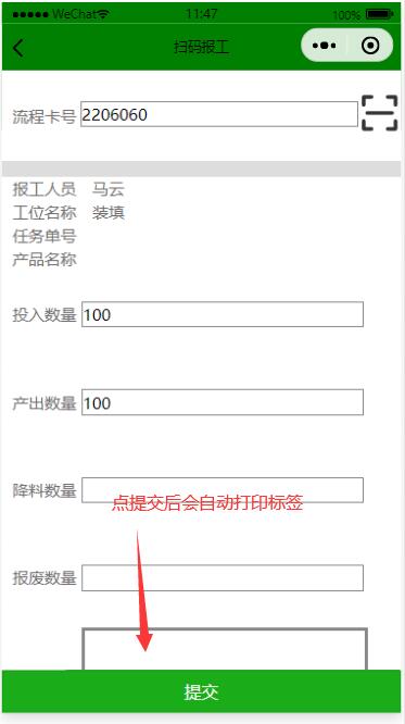 在使用流程卡掃碼報工后會自動打印標(biāo)簽