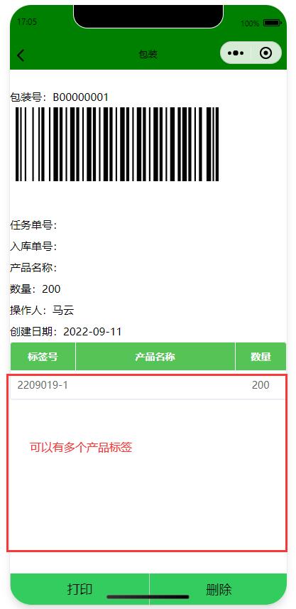 后面的成品入庫和發(fā)貨都是掃包裝標(biāo)簽碼