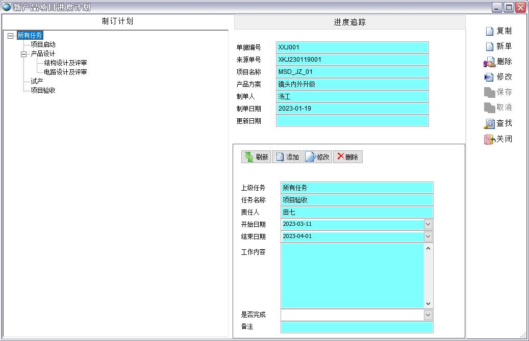 在巨靈鳥ERP中產(chǎn)品項目管理的流程:新產(chǎn)品開發(fā)計劃-新產(chǎn)品項目進(jìn)度計劃--新產(chǎn)品項目進(jìn)度表-費用報銷單,適用于對研發(fā)類項目管理要求不高但又需要的企業(yè)