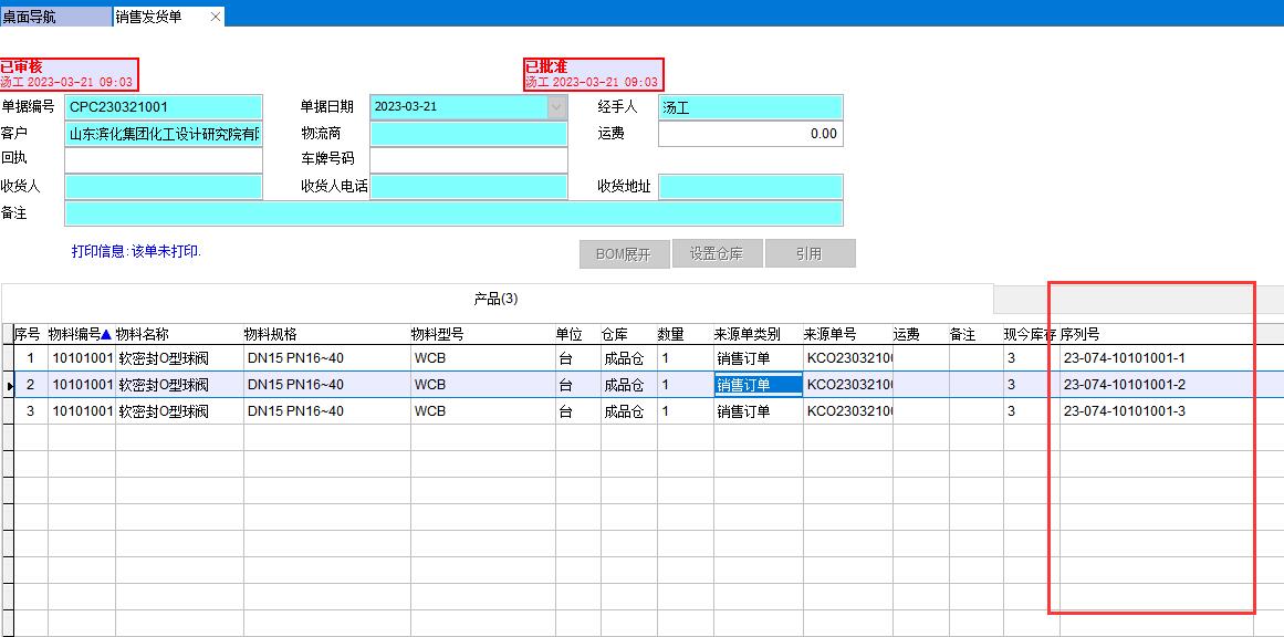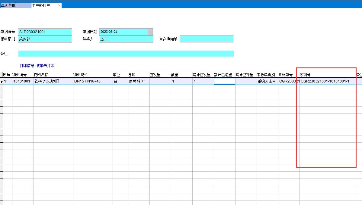 所有相關(guān)單據(jù)的序列號都要顯示出來,如成品入庫單、銷售發(fā)貨單、采購入庫單、生產(chǎn)領(lǐng)料單等