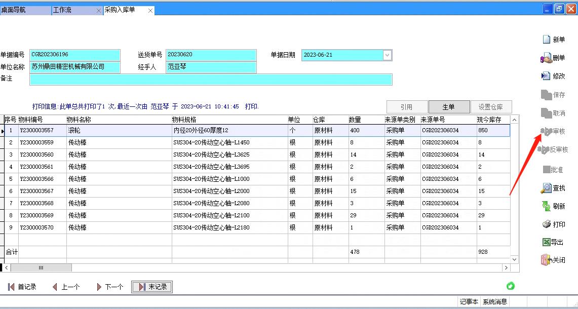 出入庫批量審核可以一次性對多個出庫單、入庫單進行審核、批準或反審核、反批準操作