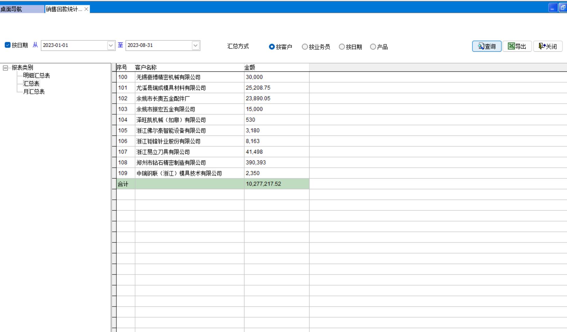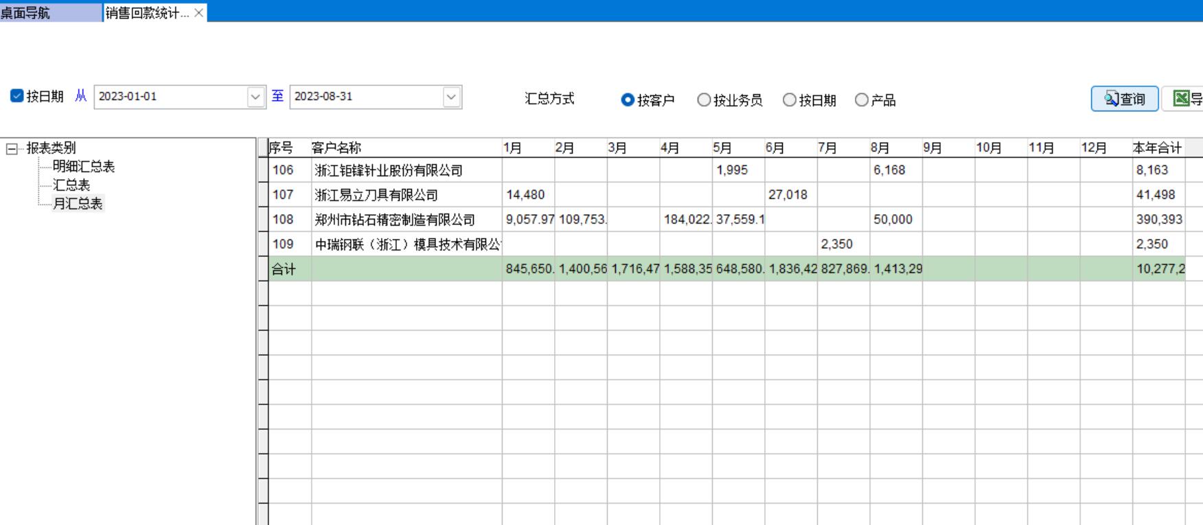 1、按客戶的收款明細進行匯總