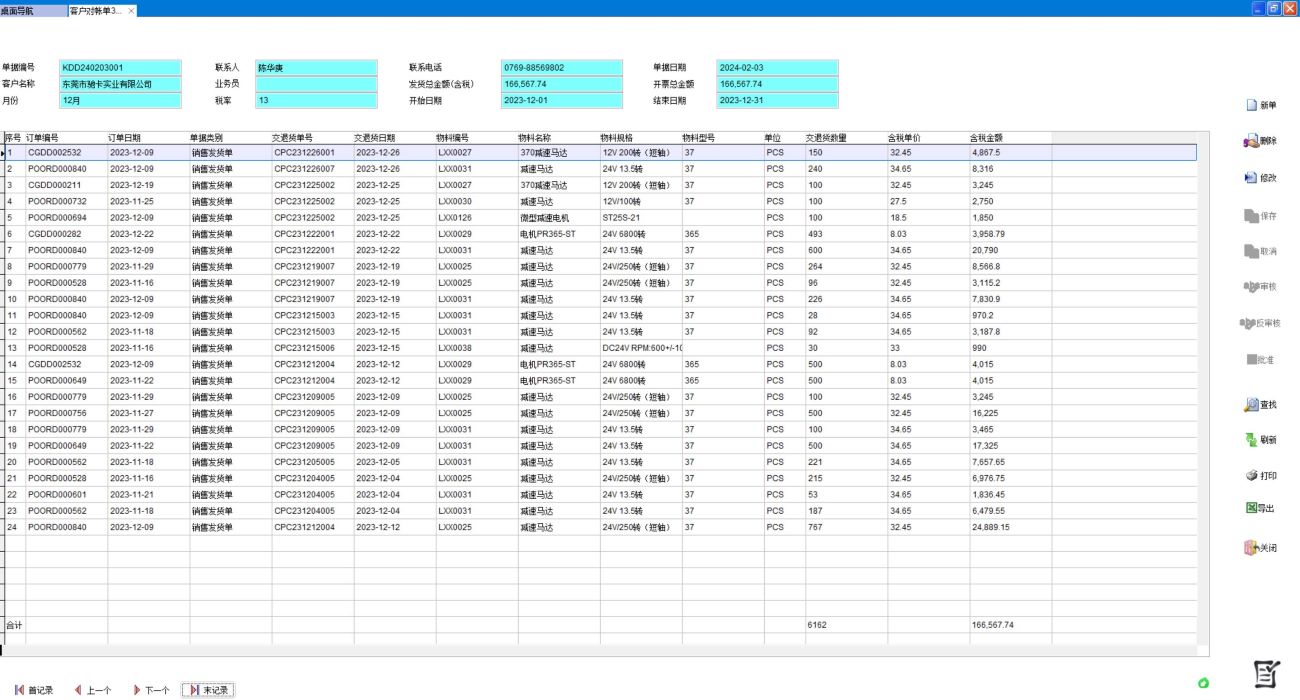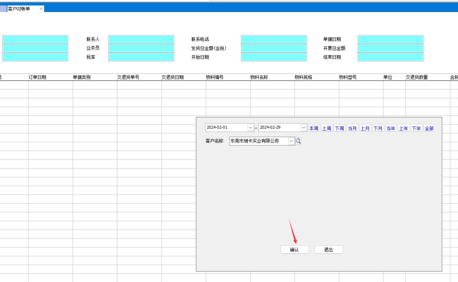點(diǎn)新單,選擇客戶和對帳的時間區(qū)間,可以是一個自然月,也可以不是自然月,比如上月25號到本月25號,點(diǎn)確定