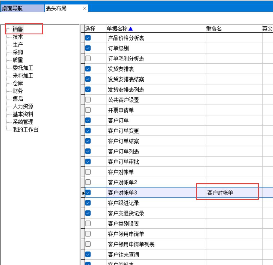 將默認(rèn)的客戶對帳單3改名為客戶對帳單