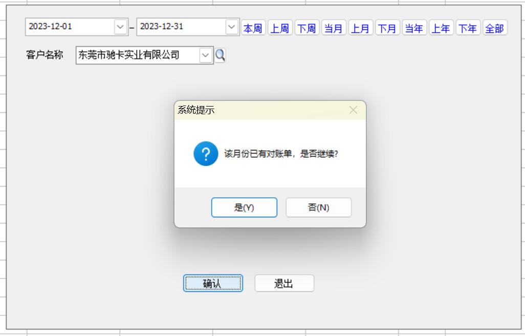 如果已有該月的對帳記錄會提示,不排除會有客戶一個月多次對帳的可能性