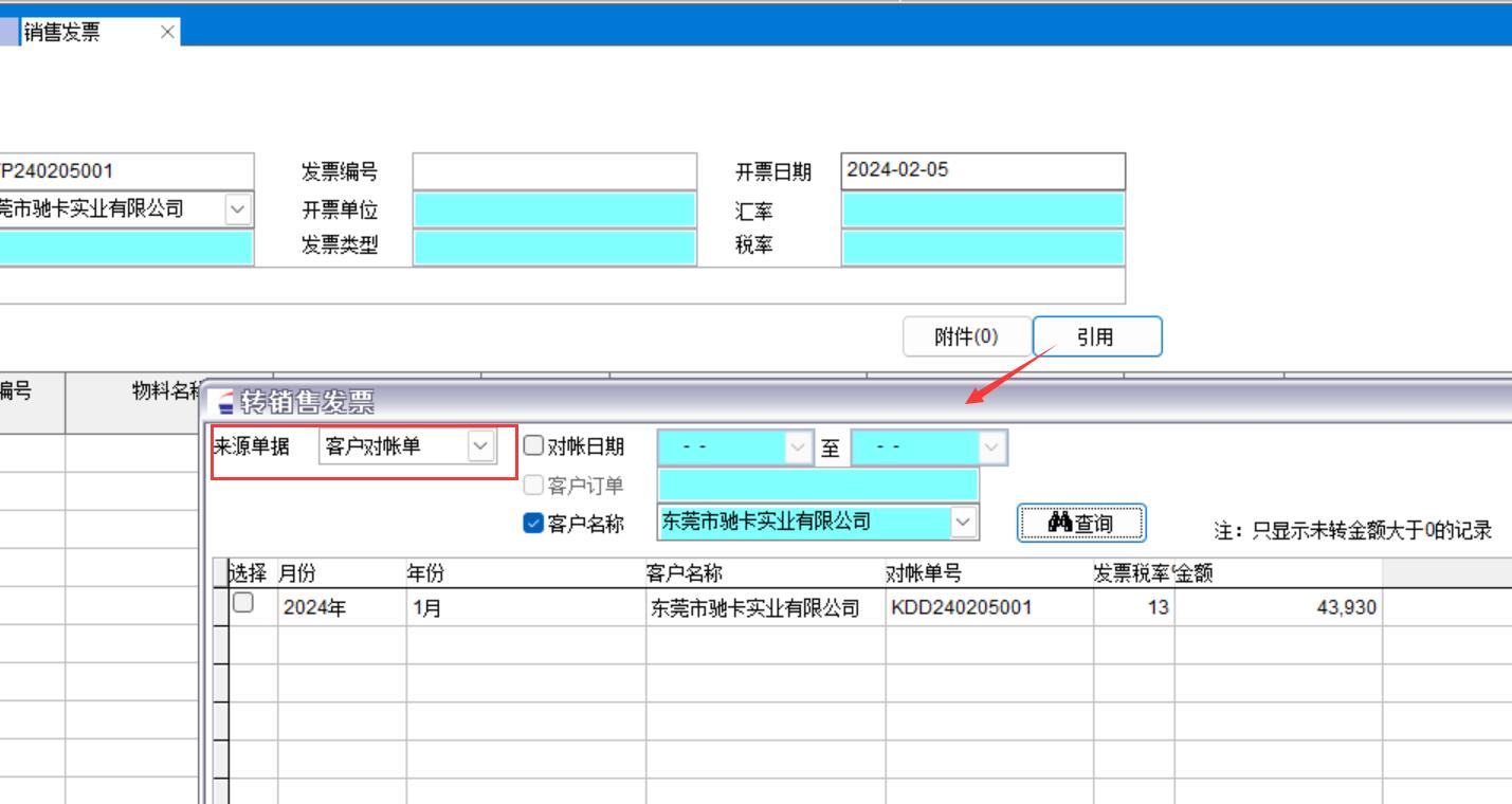 3、引用對帳單開銷售發(fā)票