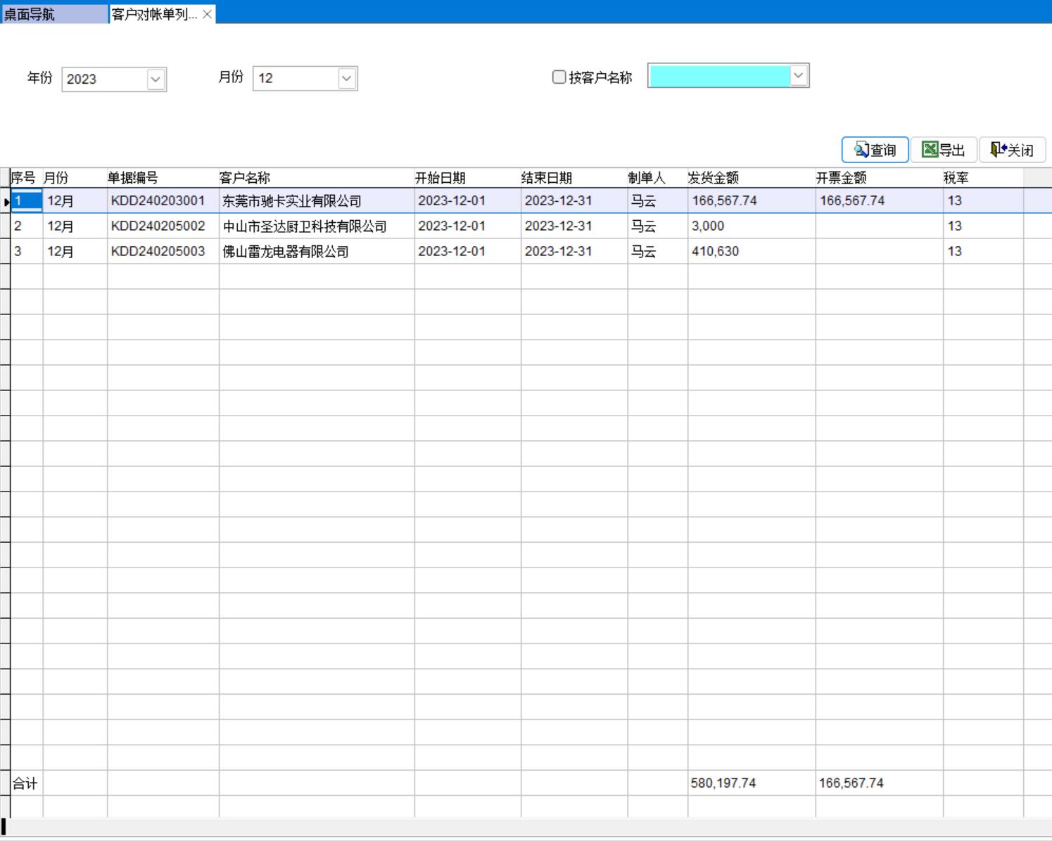 打開路徑:【主菜單】-【銷售】-【客戶對帳單3】