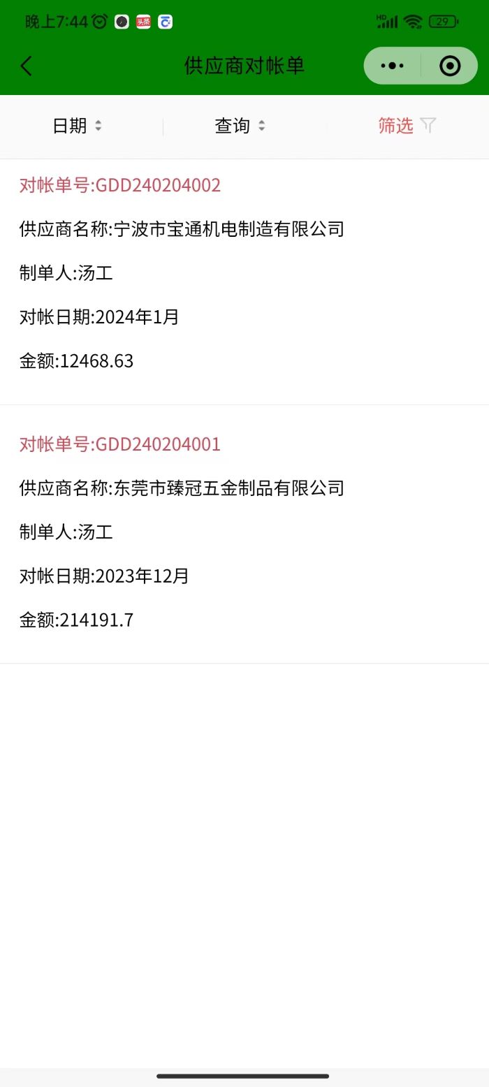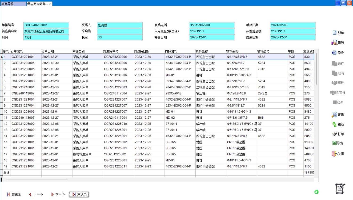 1、與供應(yīng)商對(duì)賬,并保存對(duì)賬單。對(duì)賬單保存后相關(guān)單據(jù)不能再被修改