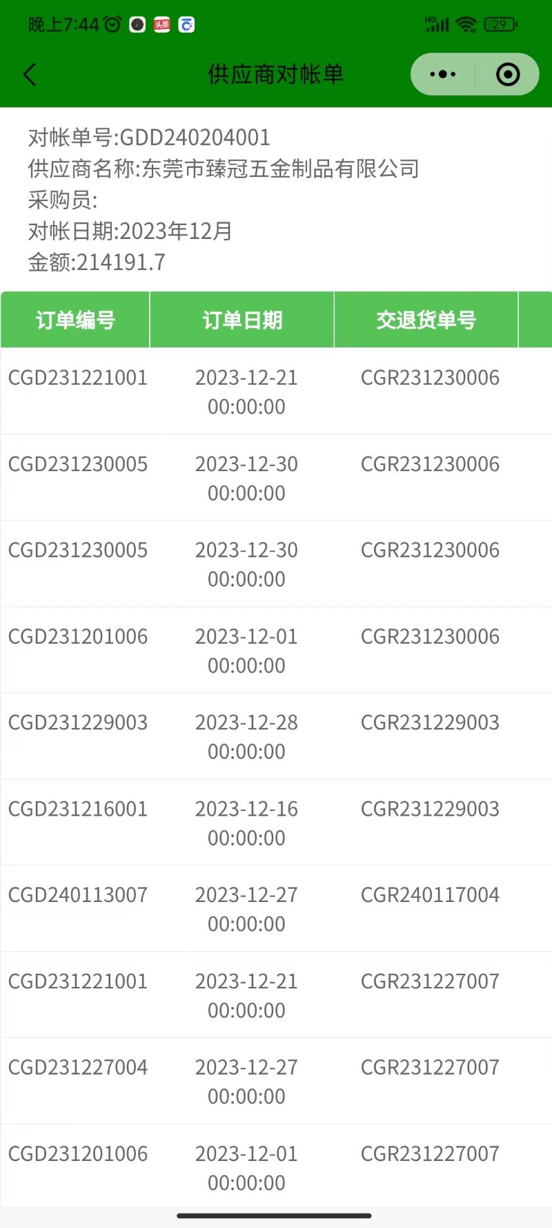 供應(yīng)商對(duì)帳單用于記錄該時(shí)間區(qū)間內(nèi)供應(yīng)商交退貨記錄