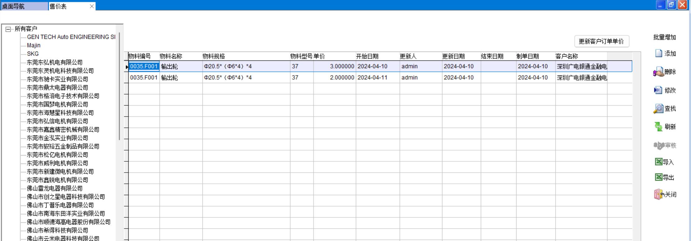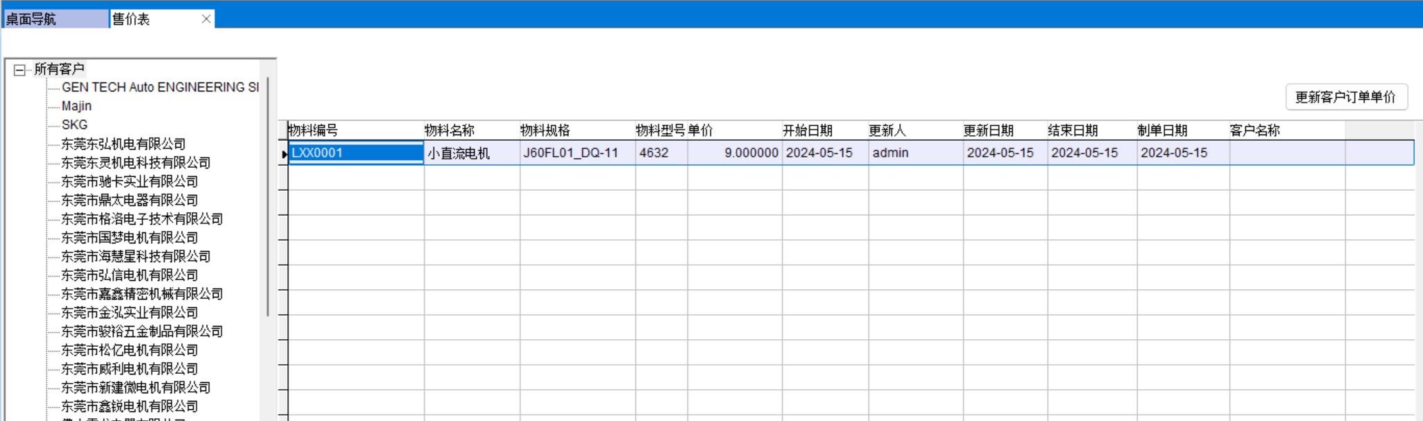 售價表的作用是將產(chǎn)品銷售價格提前錄入進去,在做客戶訂單時產(chǎn)品的價格從售價表中自動獲取。