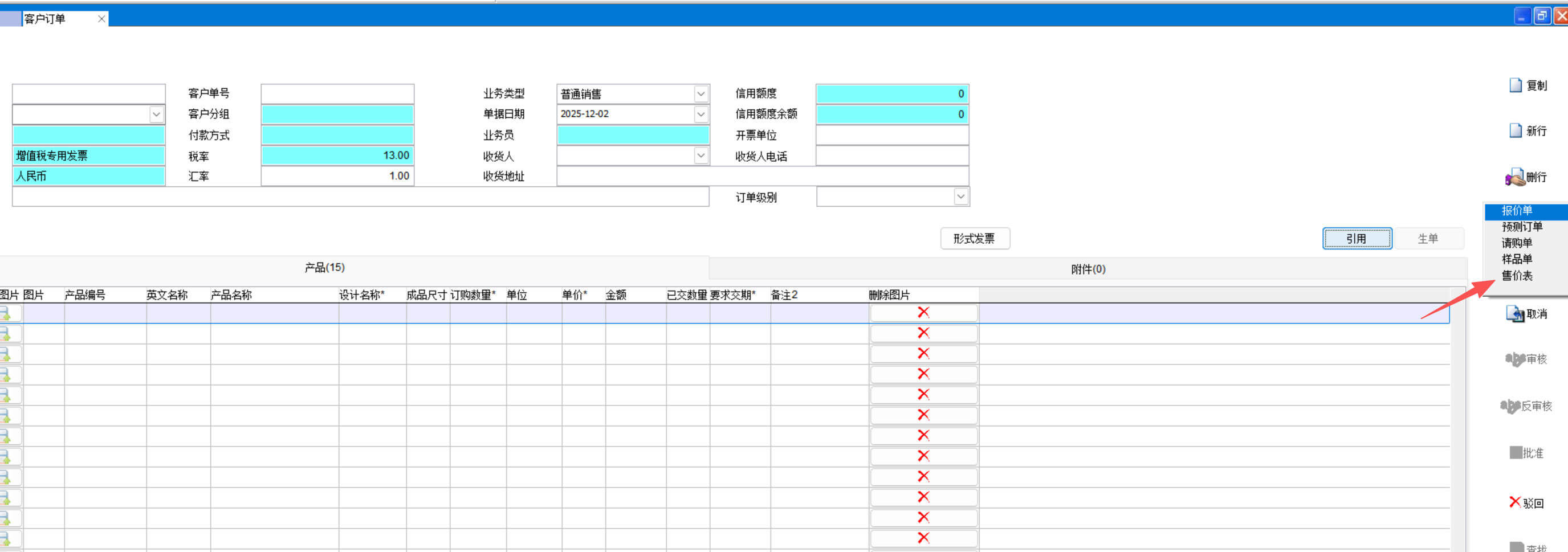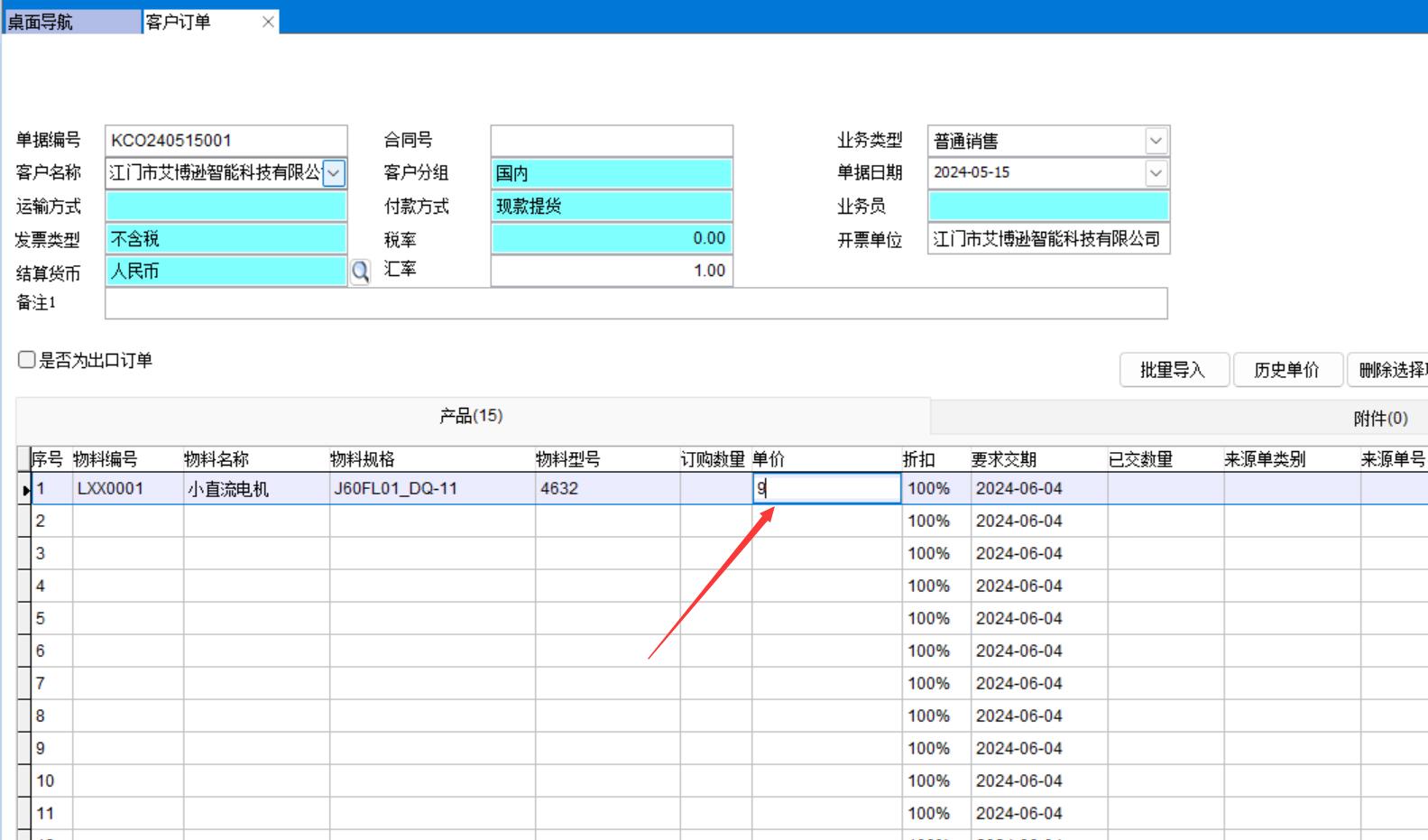 做客戶訂單看下是否生效,當輸入產(chǎn)品后單價自動出現(xiàn)