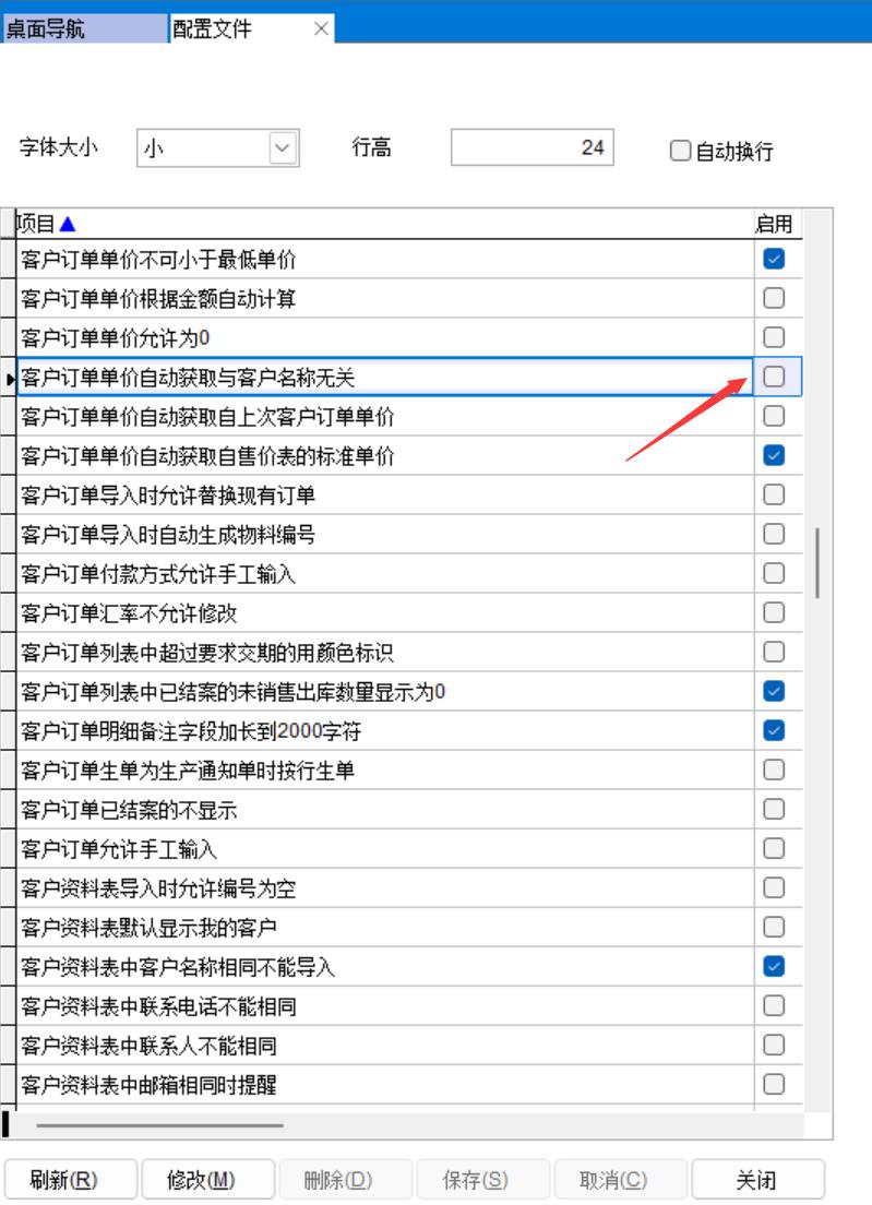 配置文件中去掉勾選客戶訂單單價自動獲取與客戶名稱無關,保存后重啟ERP生效。