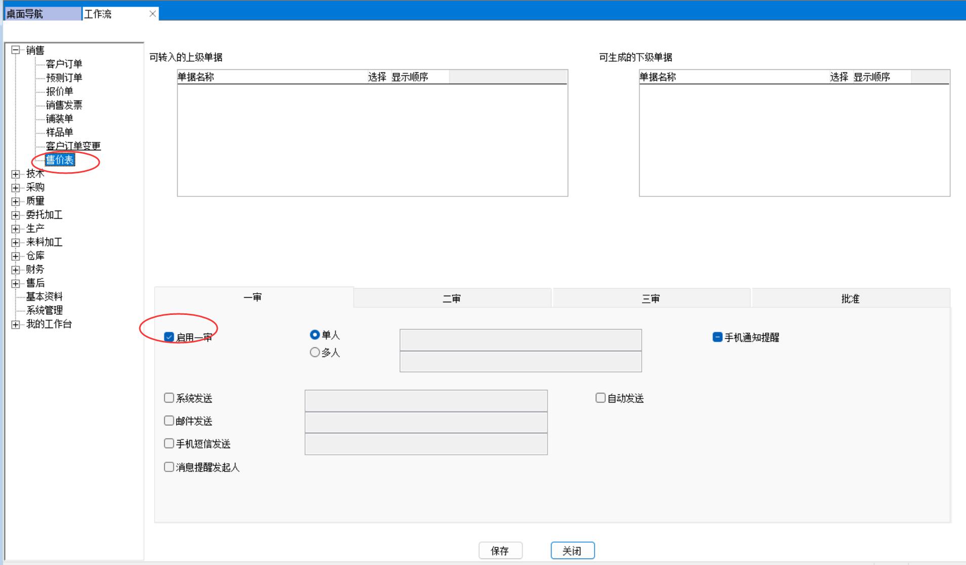 配置文件中,勾選客戶訂單單價自動獲取自售價表的標準單價,保存后重新登錄ERP生效。