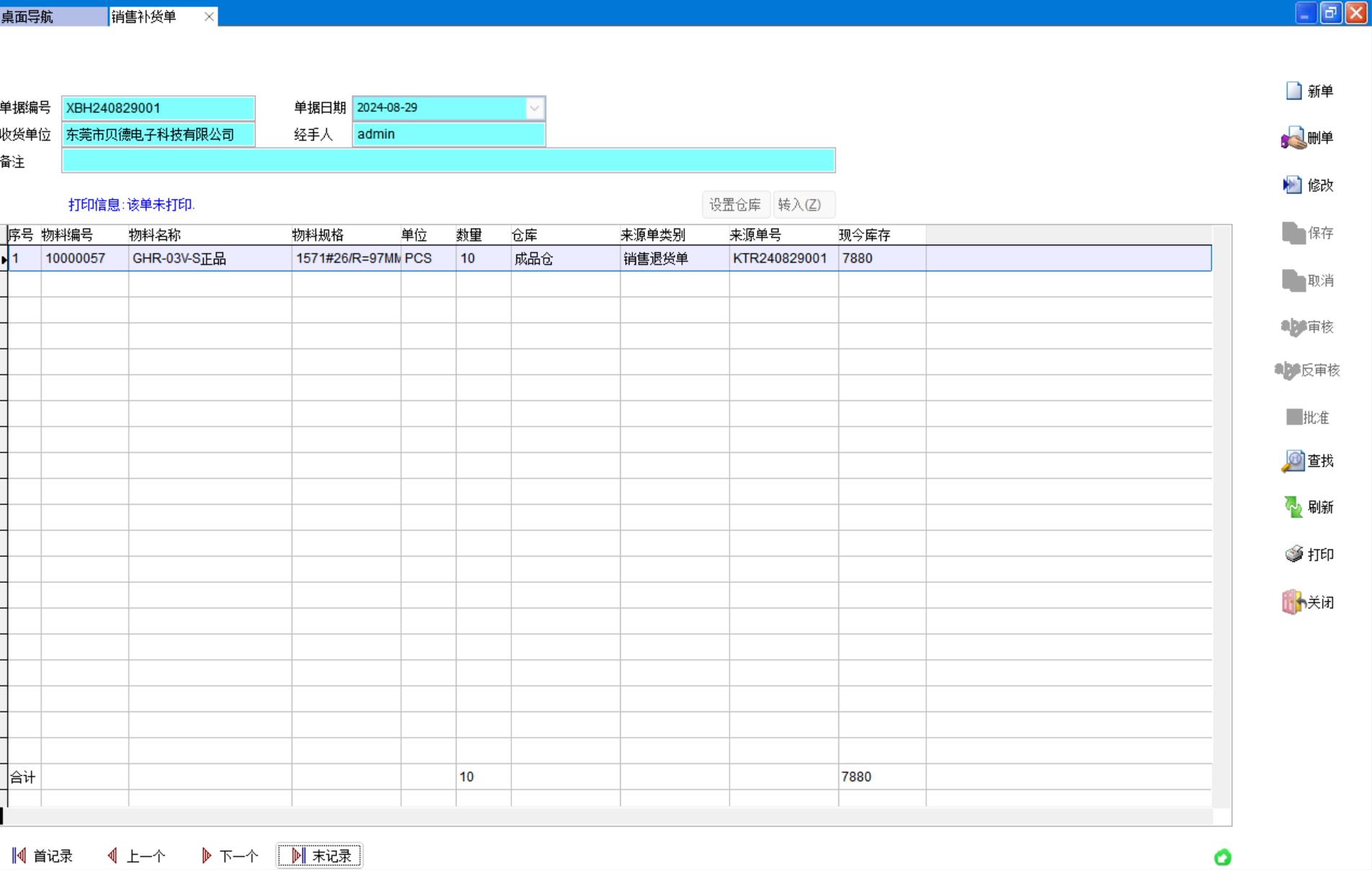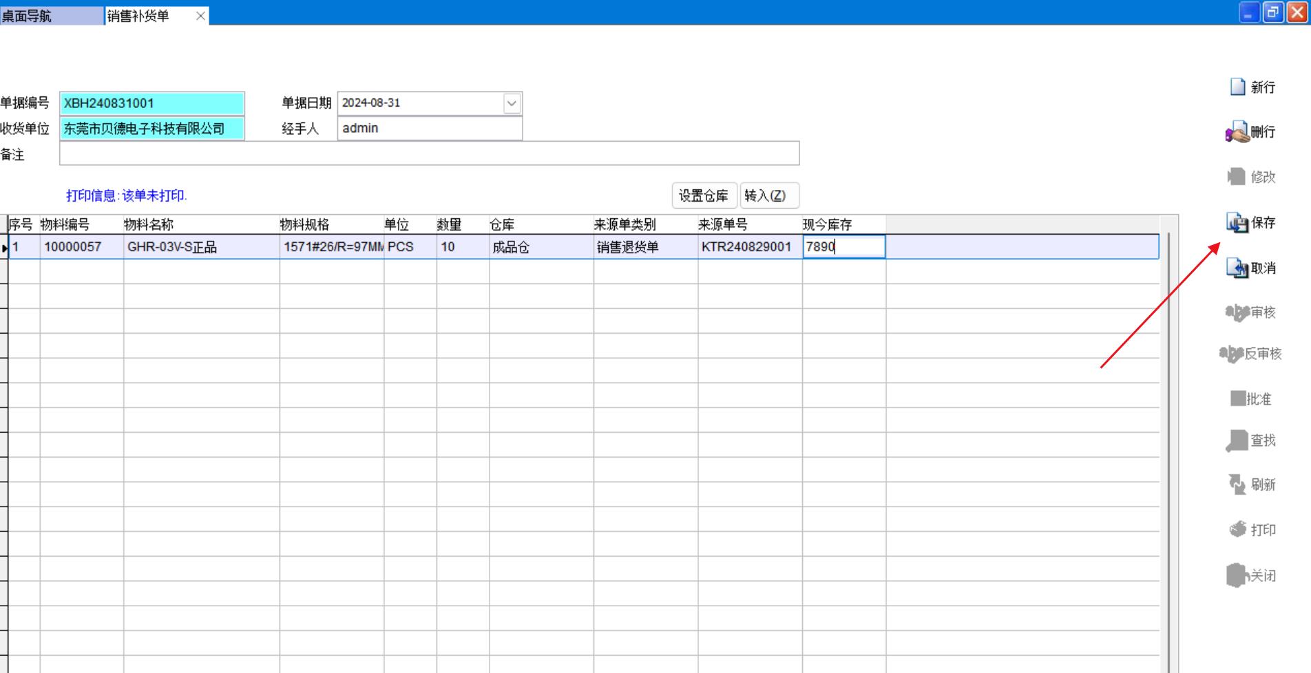 打開路徑:【主菜單】-【倉庫】-【出庫單】-【銷售補(bǔ)貨單】