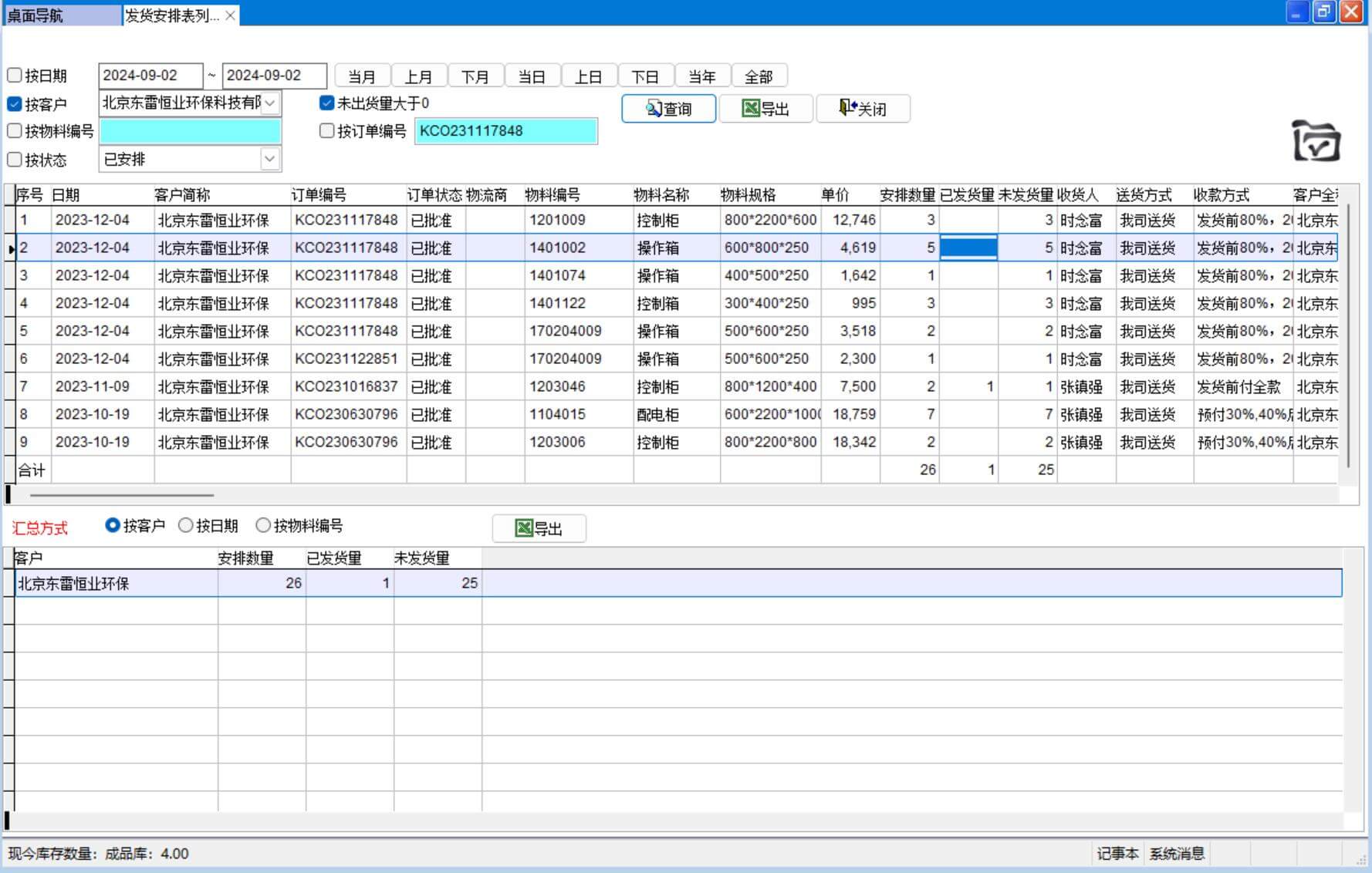 打開(kāi)路徑:【主菜單】-【銷售】-【發(fā)貨安排表】-【發(fā)貨安排表】 -右下角
