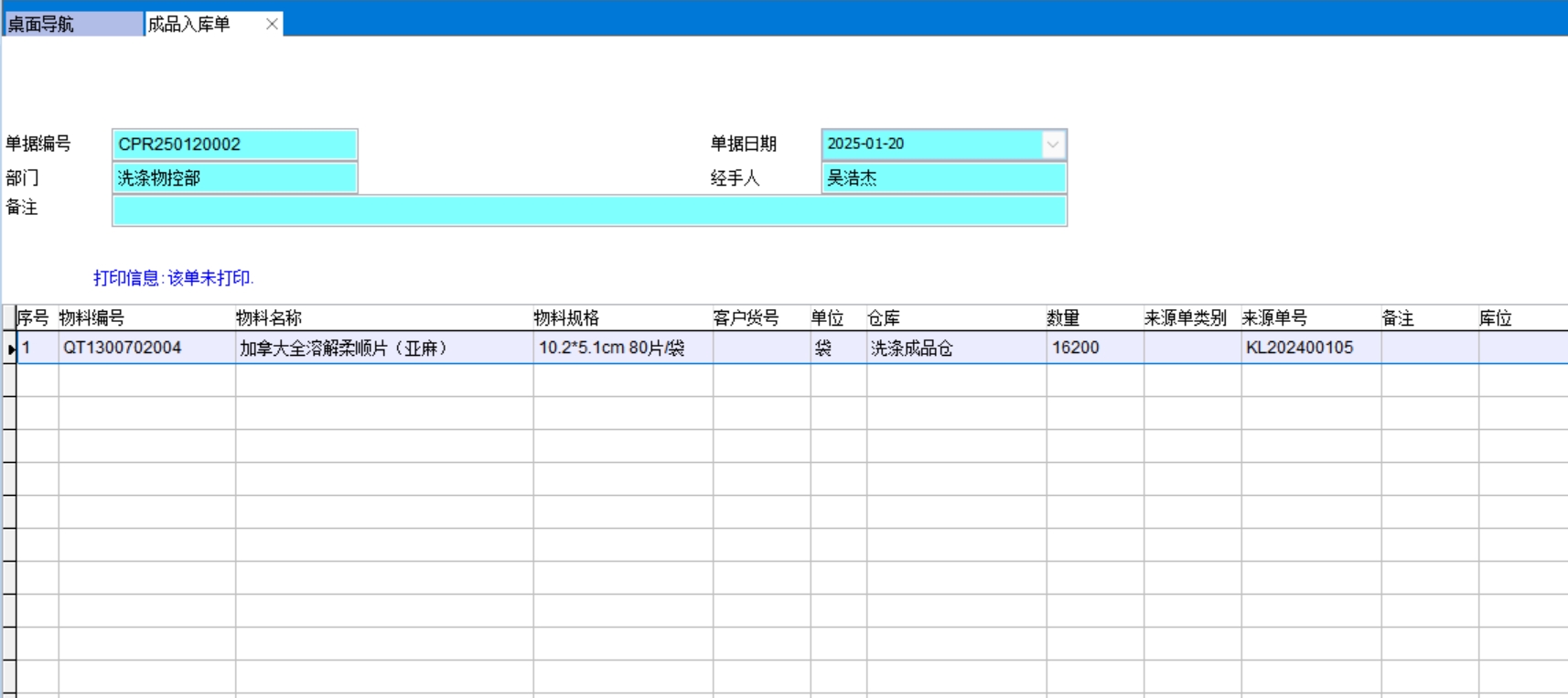 打開路徑:【首頁】-【工作臺】-【倉庫】-【入庫單】-【掃碼生單】-成品入庫單