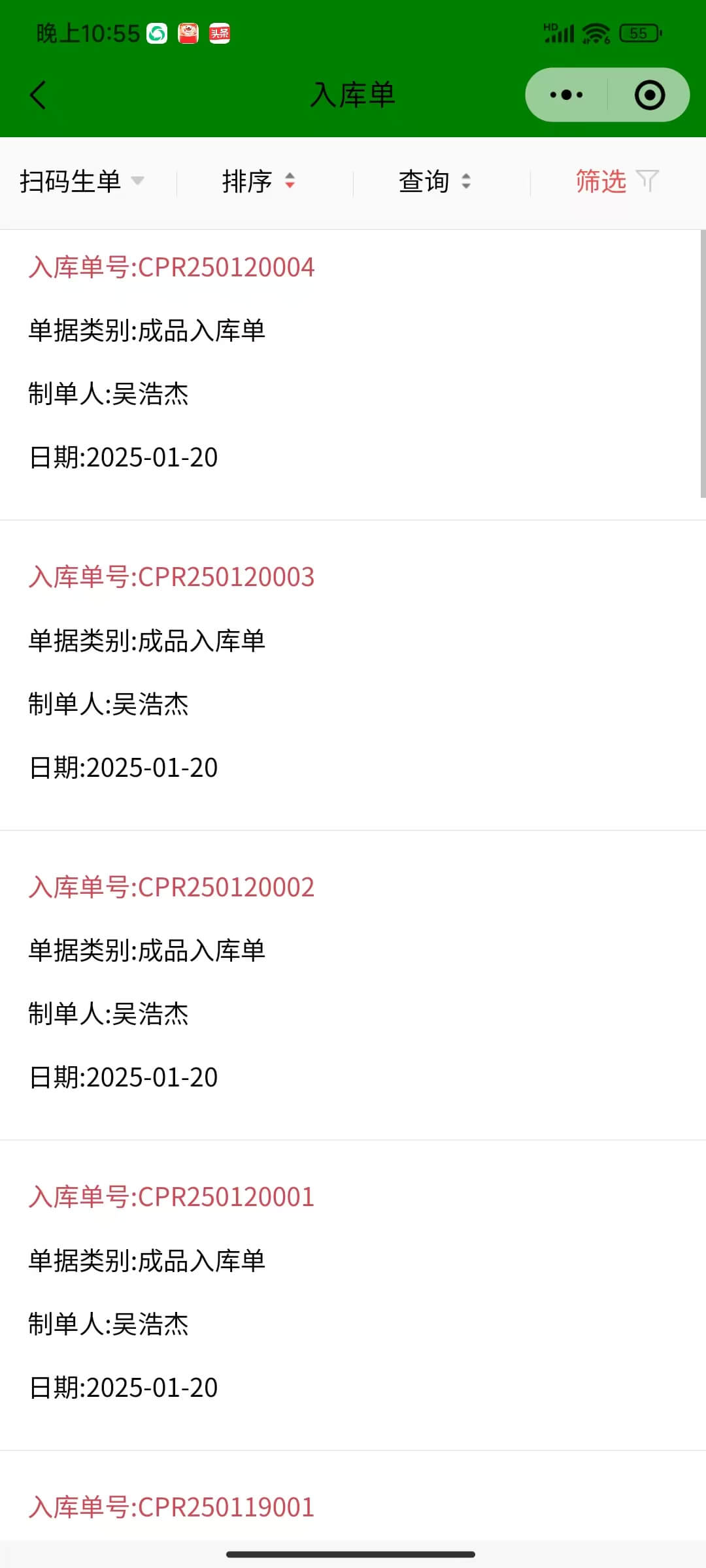 4、掃碼生成成品入庫單