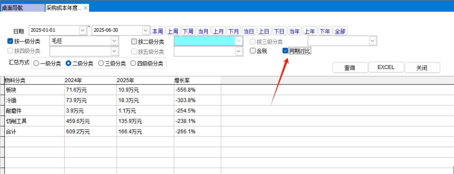 打開路徑:【主菜單】-【采購】-【報表】 -【采購成本年度對比】