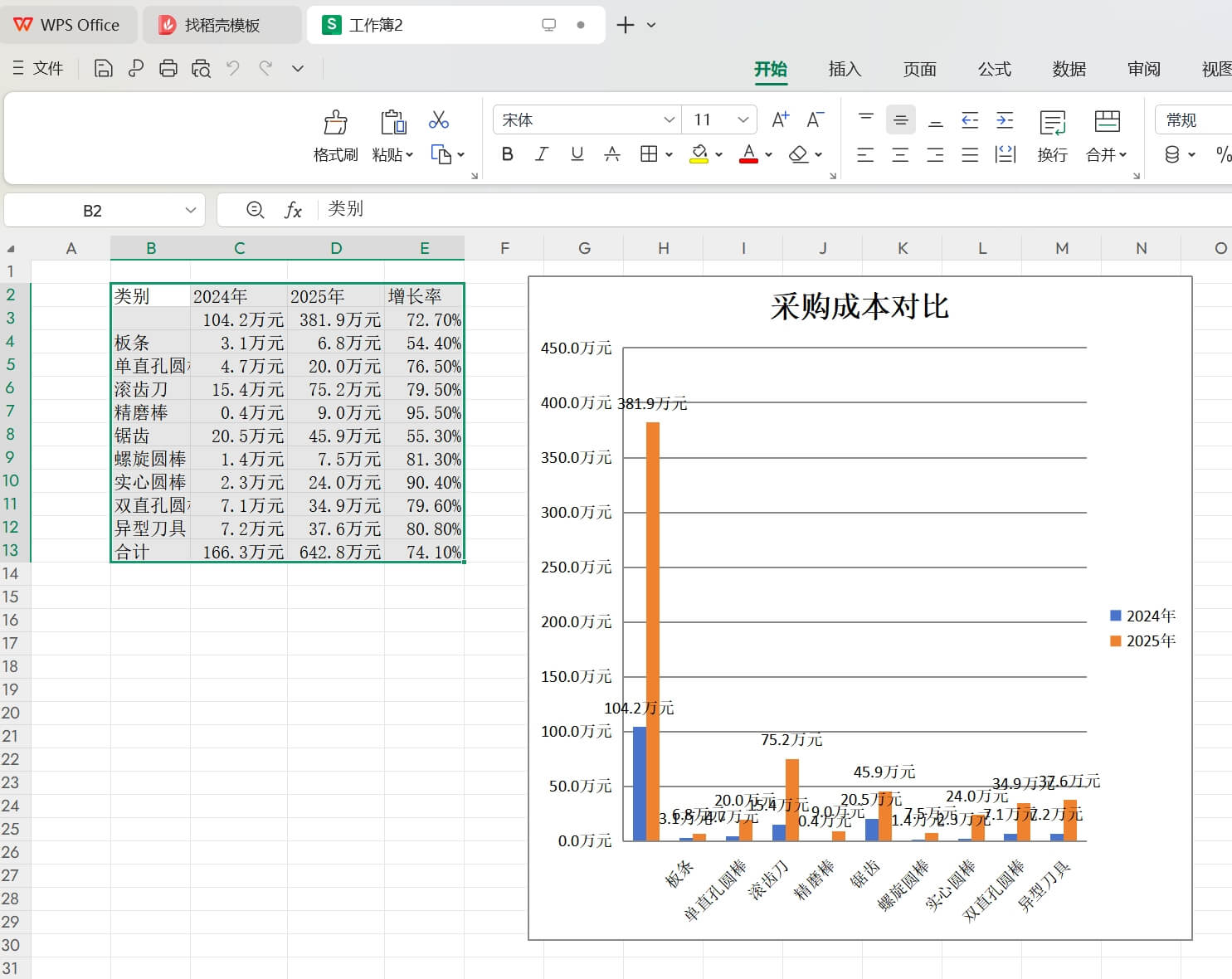 總結;采購成本年度對比可用于年度工作總結、成本分析、經營分析等場景