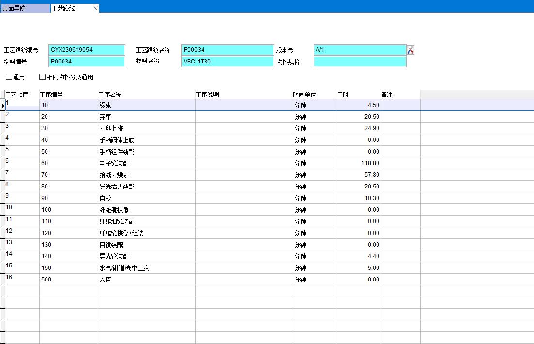 相同物料分類通用,有些企業(yè)同一個分類的產(chǎn)品使用一個工藝路線,這樣也可以簡化維護工藝路線的成本