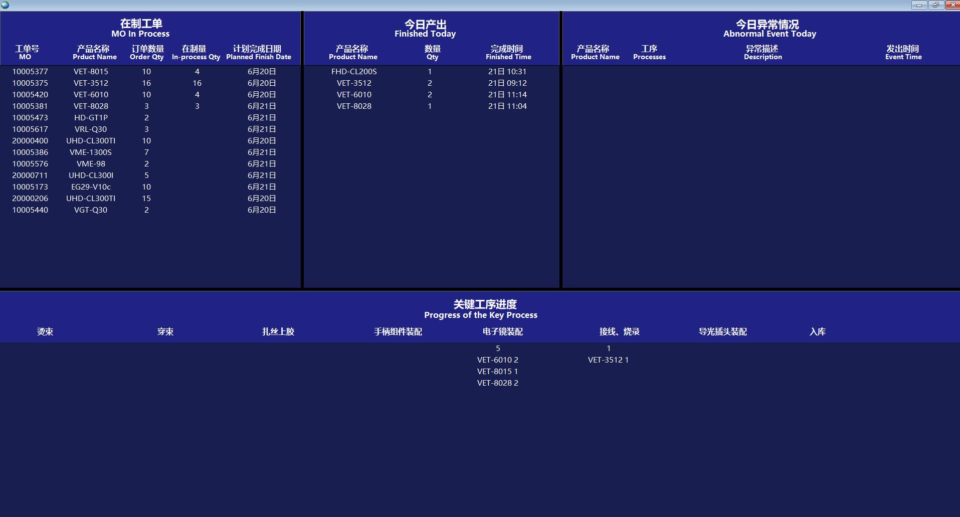 3、需要電子生產(chǎn)看板在車間大屏幕上實時顯示生產(chǎn)數(shù)據(jù)