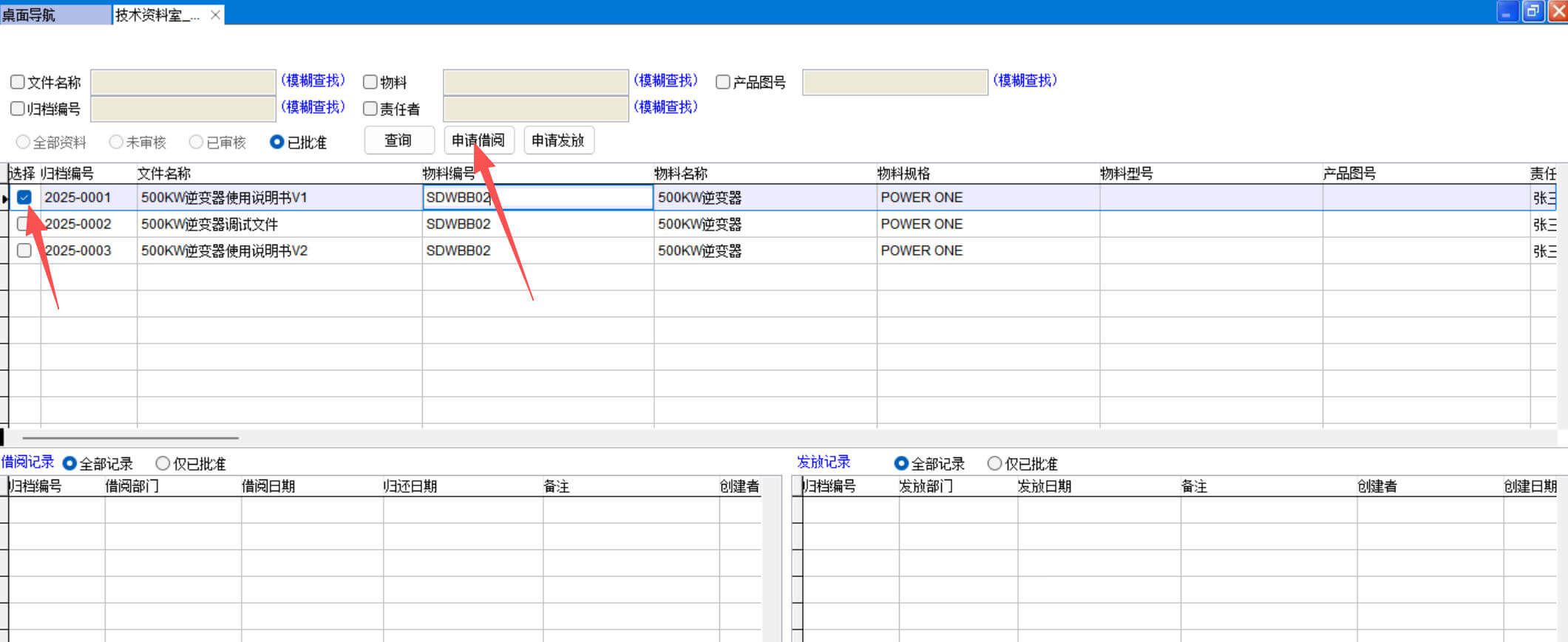 2、借閱發(fā)放管理-主菜單-技術(shù)-技術(shù)資料-技術(shù)資料室借閱發(fā)放管理