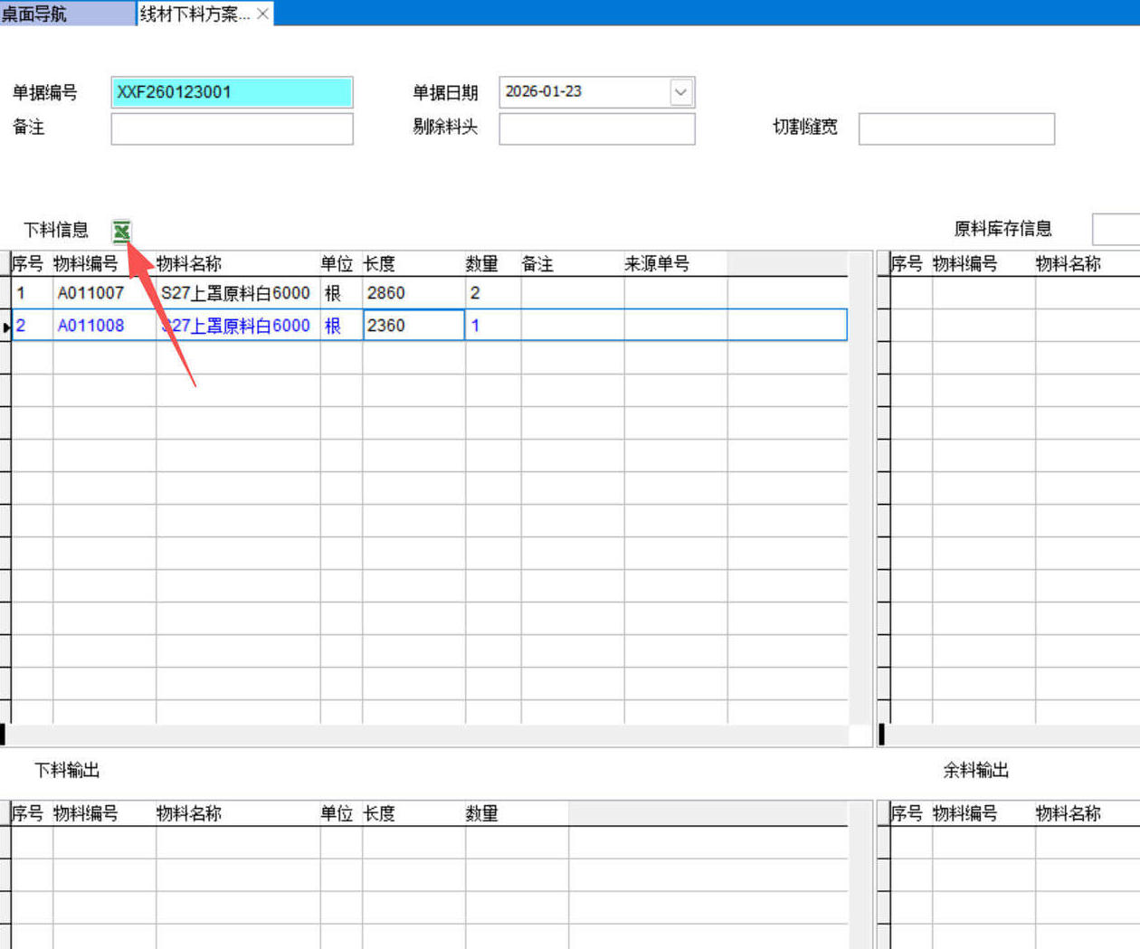下料信息可以是從excel導(dǎo)入