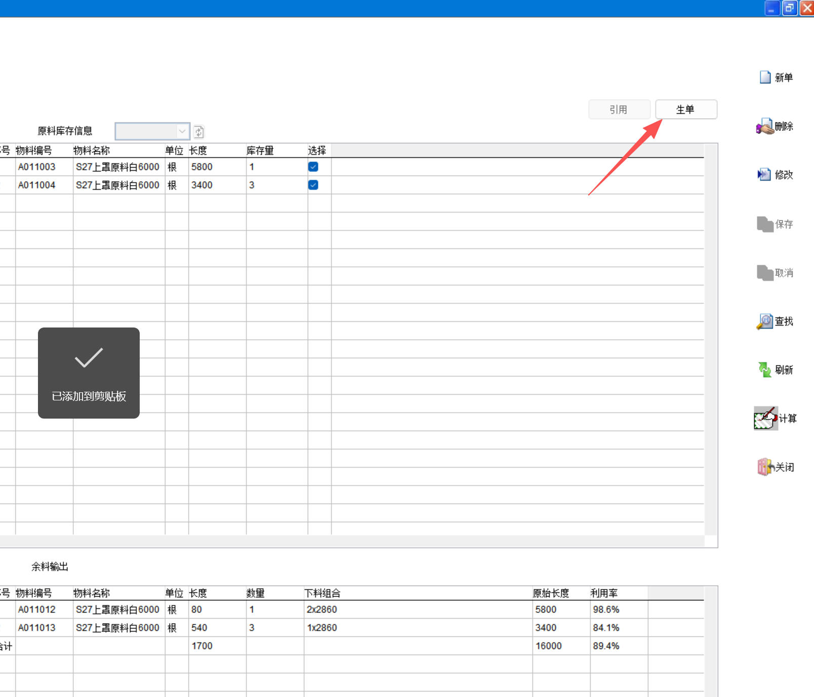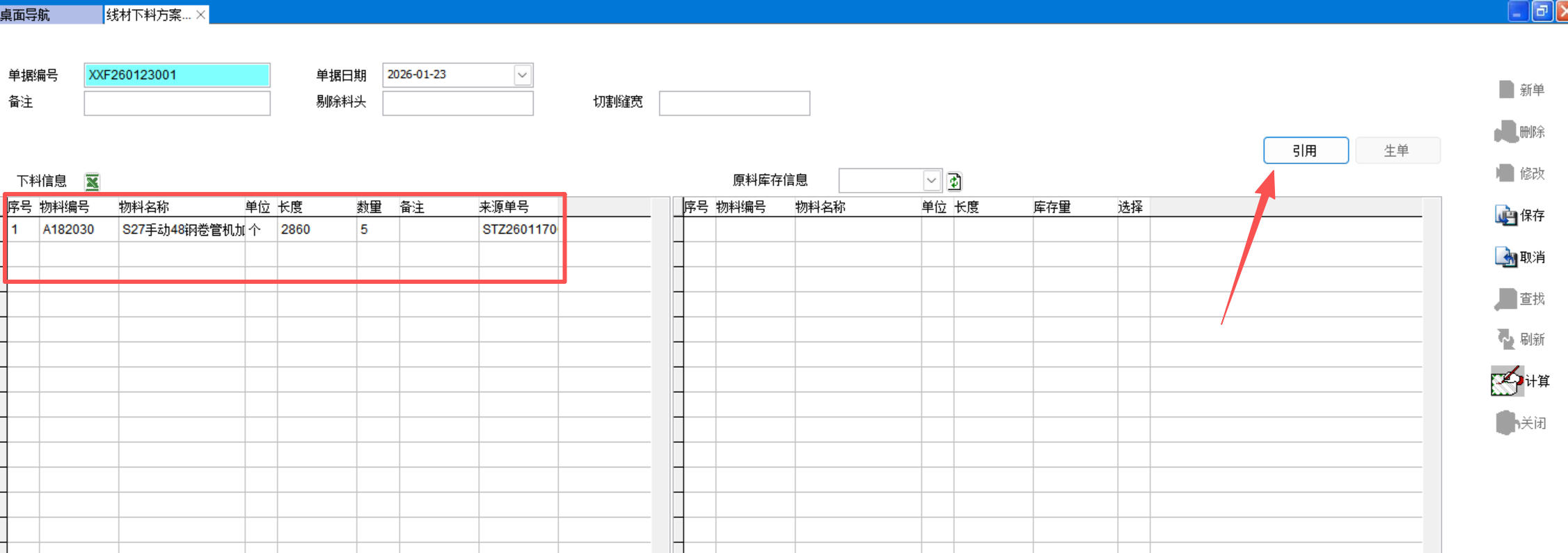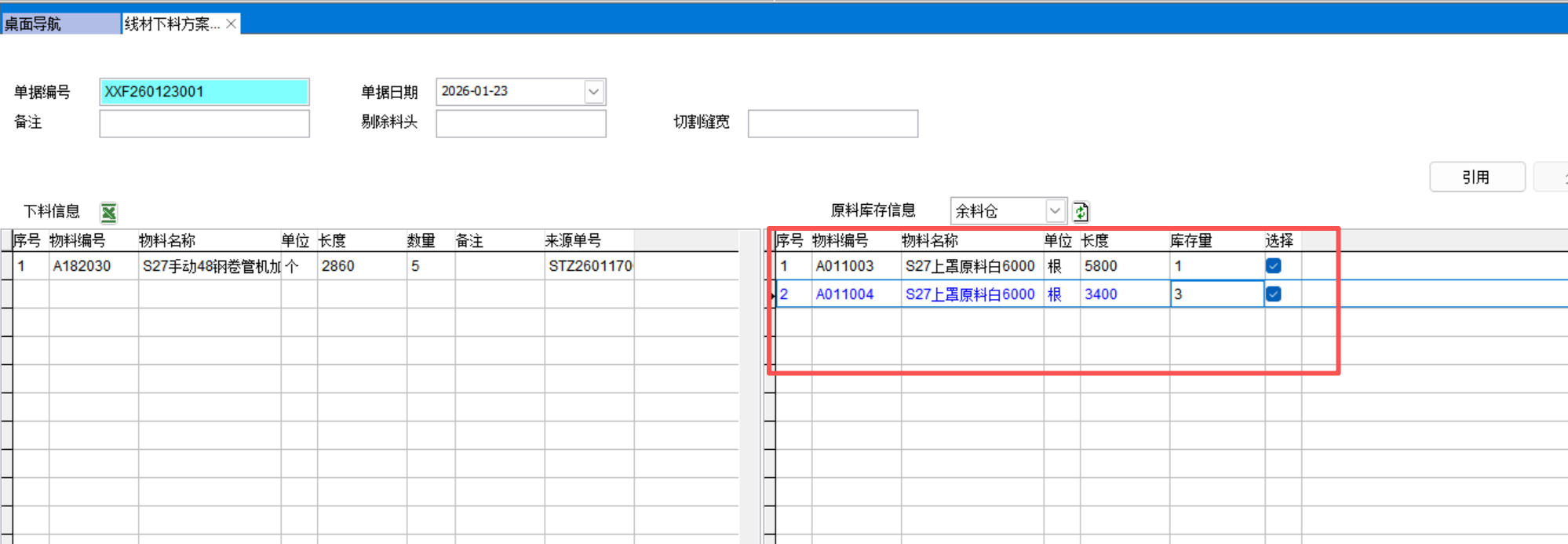 打開路徑:【主菜單】-【制造】-【線材下料方案】