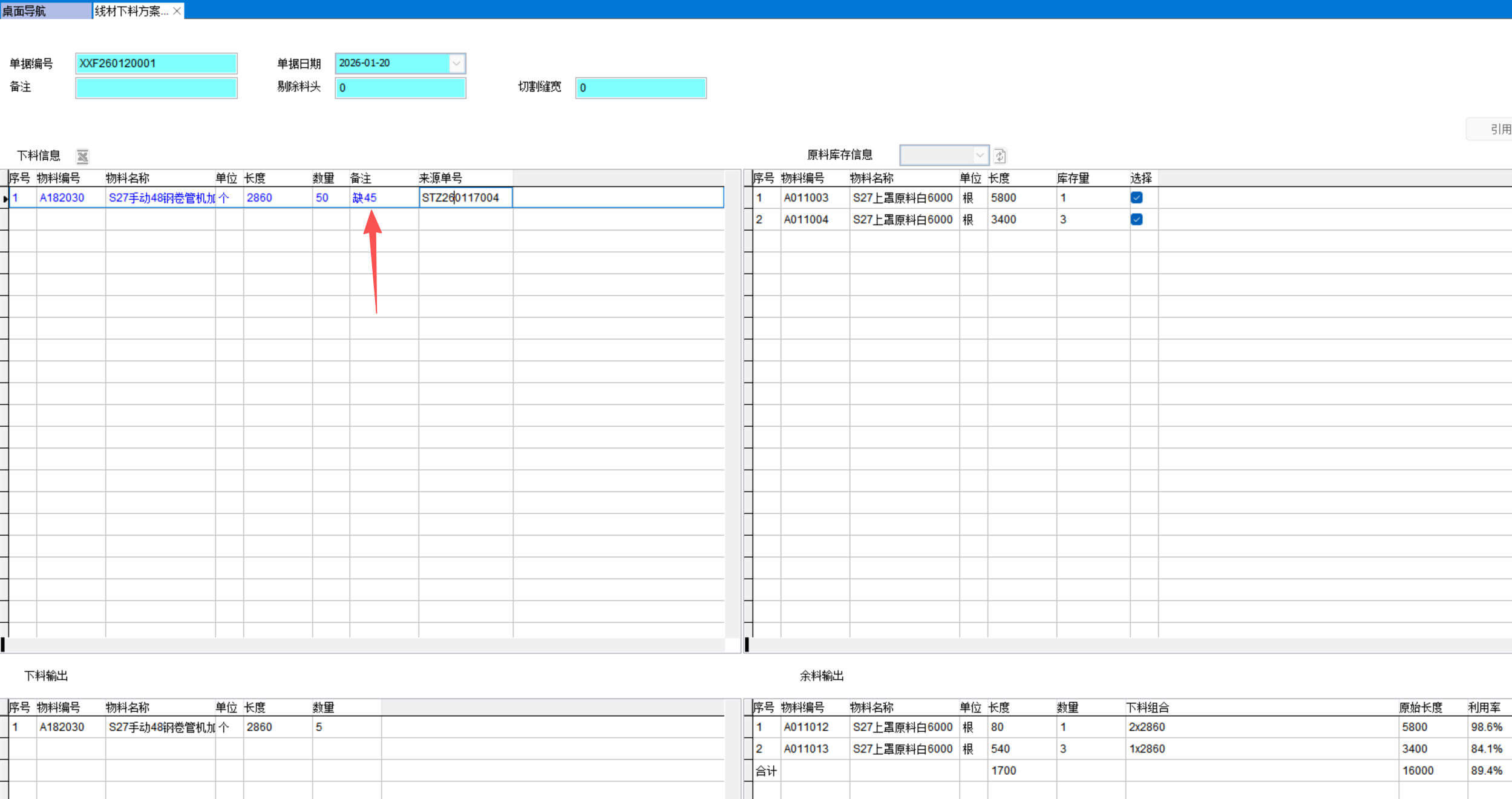 2、下料信息輸入