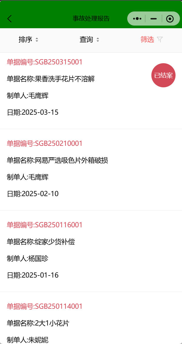 打開路徑:【首頁】-【工作臺】-【生產(chǎn)】-【質(zhì)量事故處理報告】