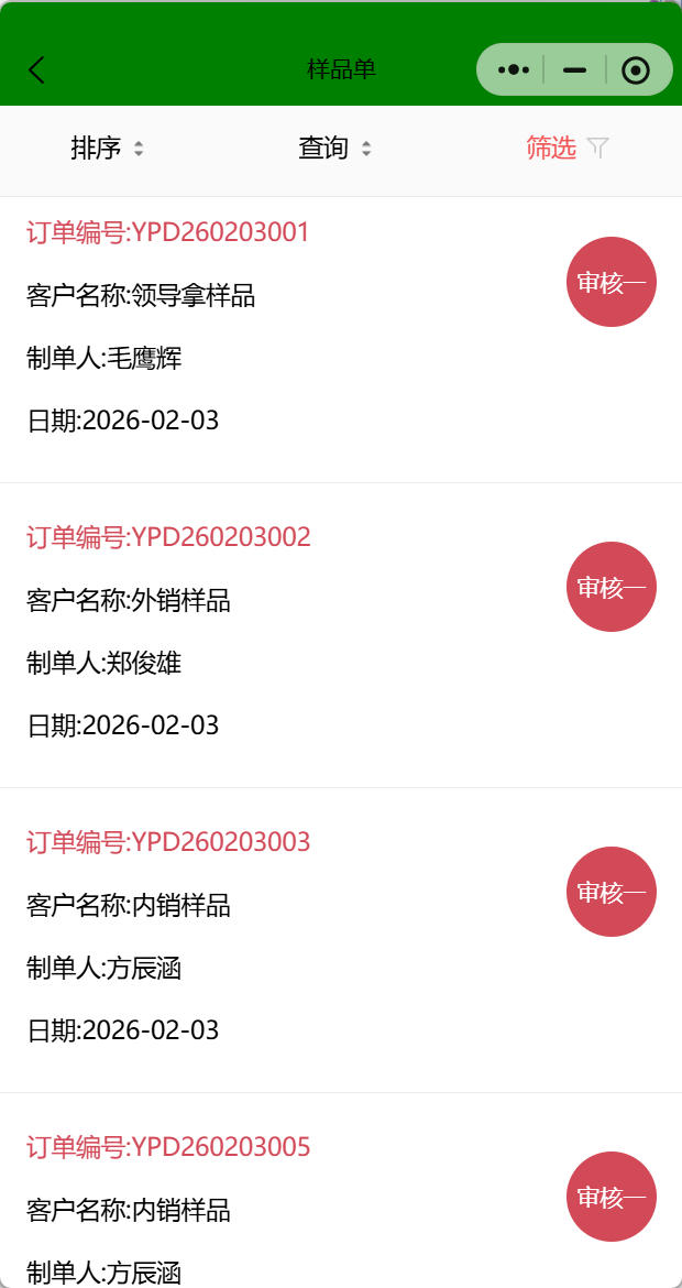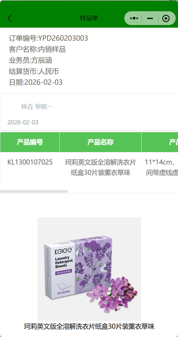 樣品單保存后發(fā)送審批人