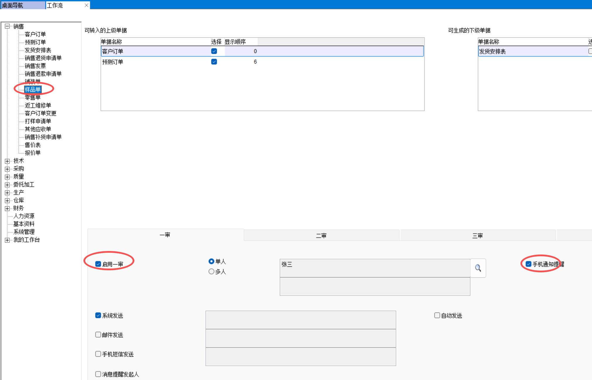 設(shè)置手機(jī)端審批樣品單