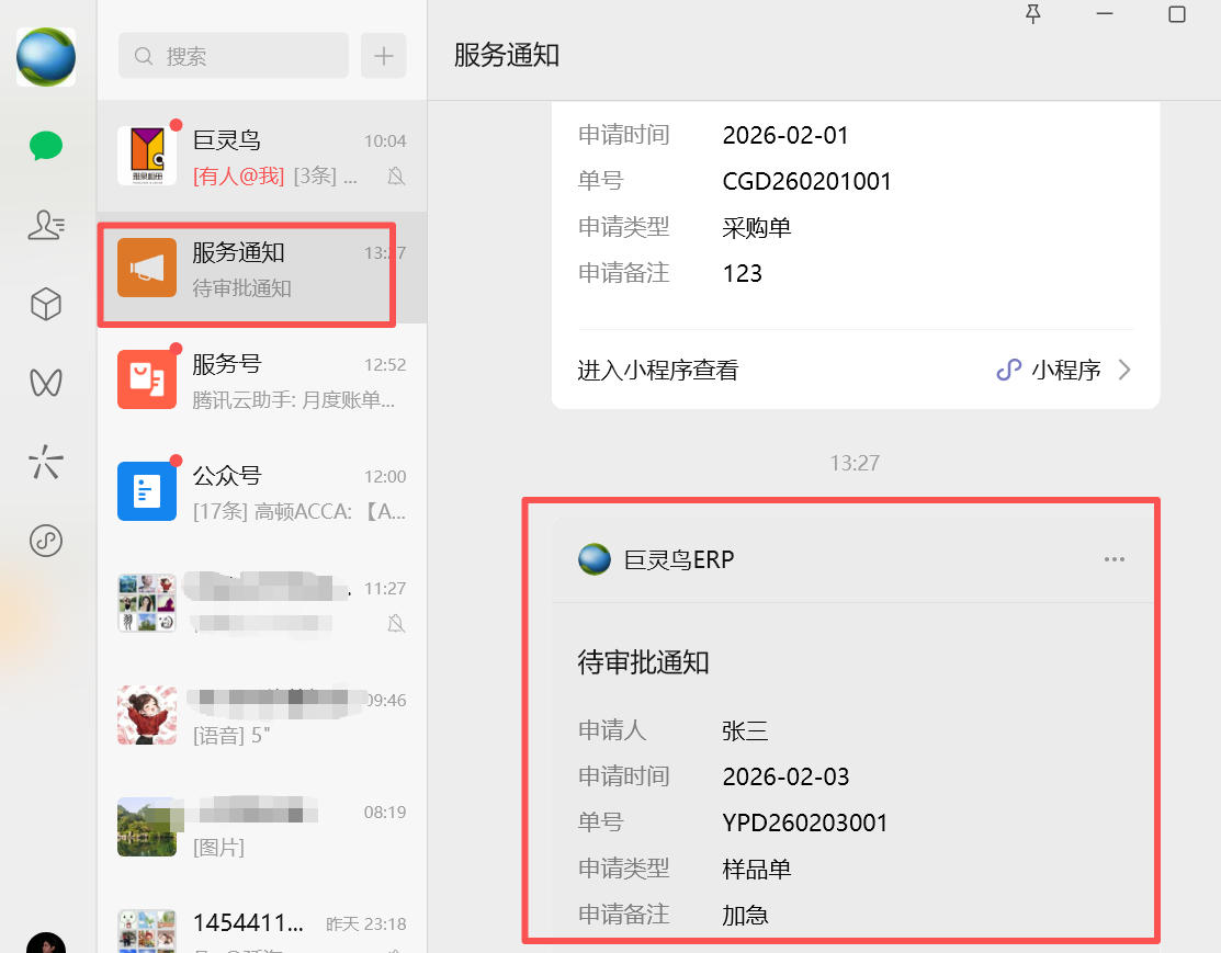 審批人收到微信通知