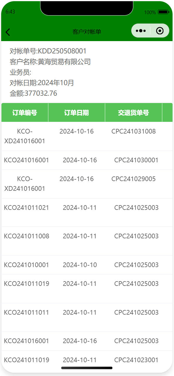 客戶對帳單顯示當(dāng)月所有銷售發(fā)貨記錄和退貨記錄