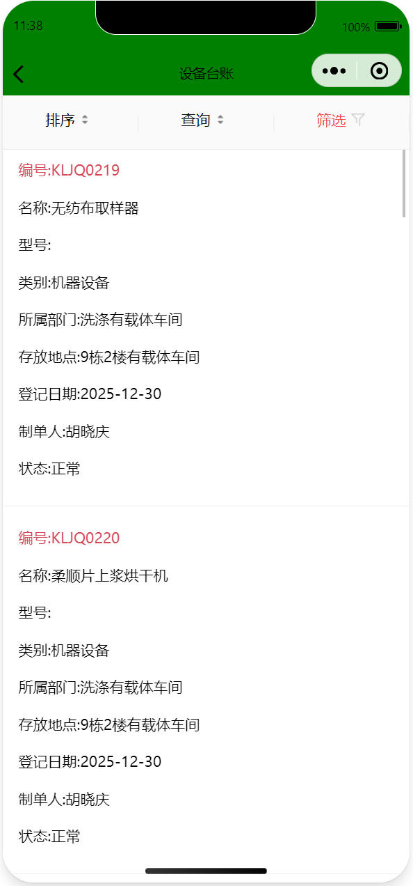 對(duì)設(shè)備進(jìn)行手機(jī)臺(tái)賬管理便于隨時(shí)跟蹤設(shè)備狀態(tài)、歷史數(shù)據(jù)、平均故障間隔實(shí)際等,輕松計(jì)算停機(jī)成本,充分利用設(shè)備價(jià)值,提高設(shè)備維護(hù)管理的工作效率,幫助管理者做成準(zhǔn)確決策。