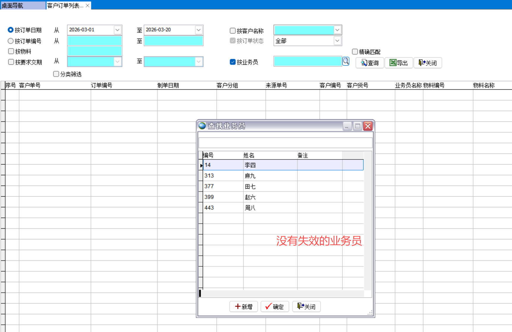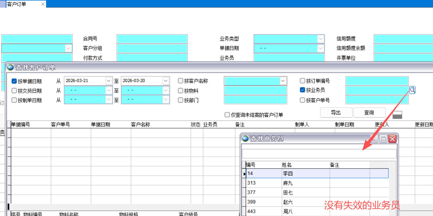 按業(yè)務員查找客戶訂單
